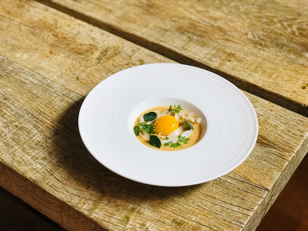 S餐廳從開幕初期定調「北歐料理」到延攬法籍主廚回歸「正統法餐」,經營辛苦不斷重新調整,2019下半年延攬 33歲香港籍新銳主廚 Constant Cheung(張卓智)坐鎮,過去三個月反覆測試菜色,總算在十月上旬正式推出秋季菜單,頗有「中西餐點記憶交融,南洋辛香元素交會」之感。