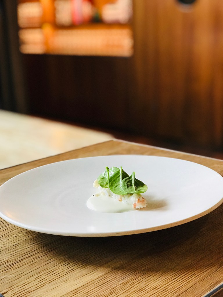 肩負得讓 S餐廳擠入西餐廳排行名單的重任,chef Constant 自然壓力不小,特別是10道菜的菜單安排內容野心很大,除了中西餐點的記憶,還規劃南洋辛香風味,低溫 sous vide 過的花枝切成麵條,上桌沖入高溫香茅龍蝦濃湯,伴著油封蛋黃,色美味鮮,就是不辣版的冬陰功湯啊,完全是我的口味(蓋章!可以!),另一道滋味清爽的角蝦煎熟,再以用米麴、芝麻油和鳳梨莎莎提味,baby波菜平衡口感,最後再淋點榛果油,甜的、酸的、鮮的一次到位。