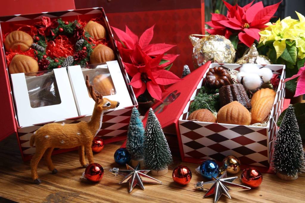 聖誕花禮盒「夢與撲克」有居樂堂甜舖招牌甜點,包含每日現烤現量的可麗露,外殼酥脆內部甜軟,素有甜點小鈴鐺之稱,就像聖誕樹上必備的甜點精靈。冬日栗子費南雪、蜂蜜瑪德蓮則是使用花蓮慶錩牧場放牧雞蛋、法國進口杏仁粉以及 A.O.P. 產區認證的品牌奶油製作,香甜滋味,入口滑順不膩,是大人感的手作甜點。