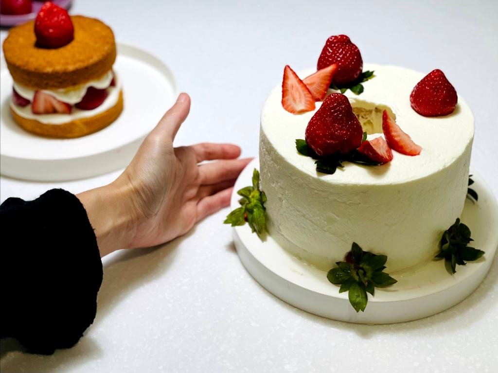 這一次的蛋糕製作,我想完成兩種不同樣式,分別是經典6寸中空戚風蛋糕以及4寸雙人分享蛋糕,同樣使用:法國鮮奶油、新鮮草莓做為裝飾,非常簡單好上手,有興趣的讀者一起在家跟著做,就能完成這款簡單大方的高顏值甜點!